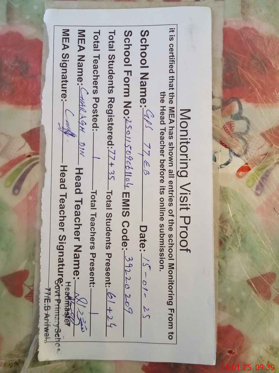 | EMIS Code: 39220209 | Name of School: GPS 77/EB | |||