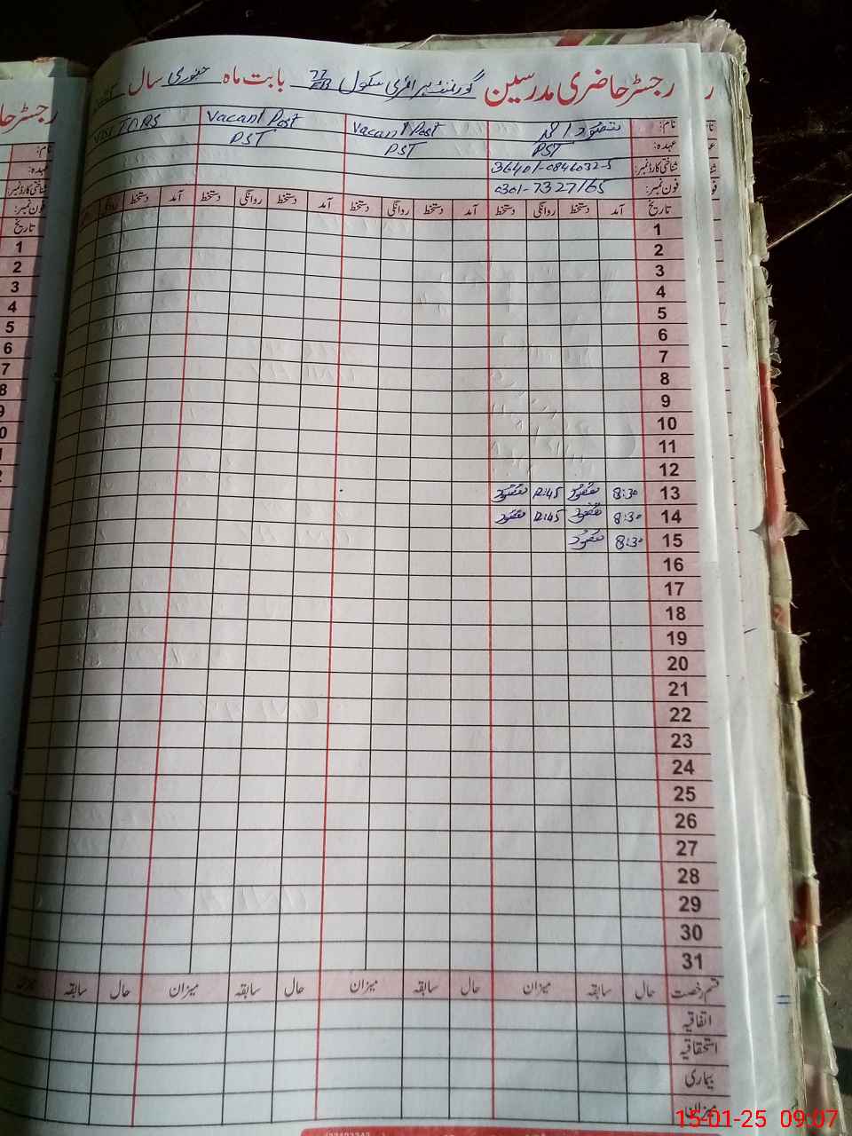 | Name: MA**** AH**** Designation: (School Headmaster's/Headmistress's) PST Phone/Cell Number: 03**** |