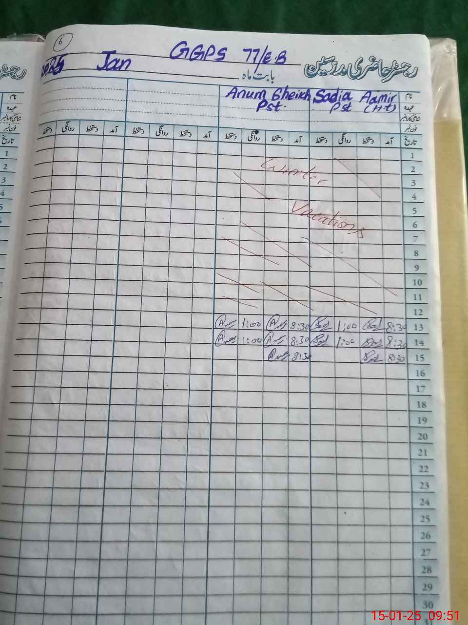 | CNIC | Full Name | Designation | R/C | Absence During Last Calender Month |