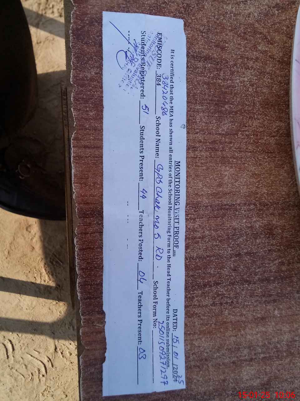 | EMIS Code: 38420486 | Name of School: GPS CHAK NO.5 REMOUNT DEPOT | |||
