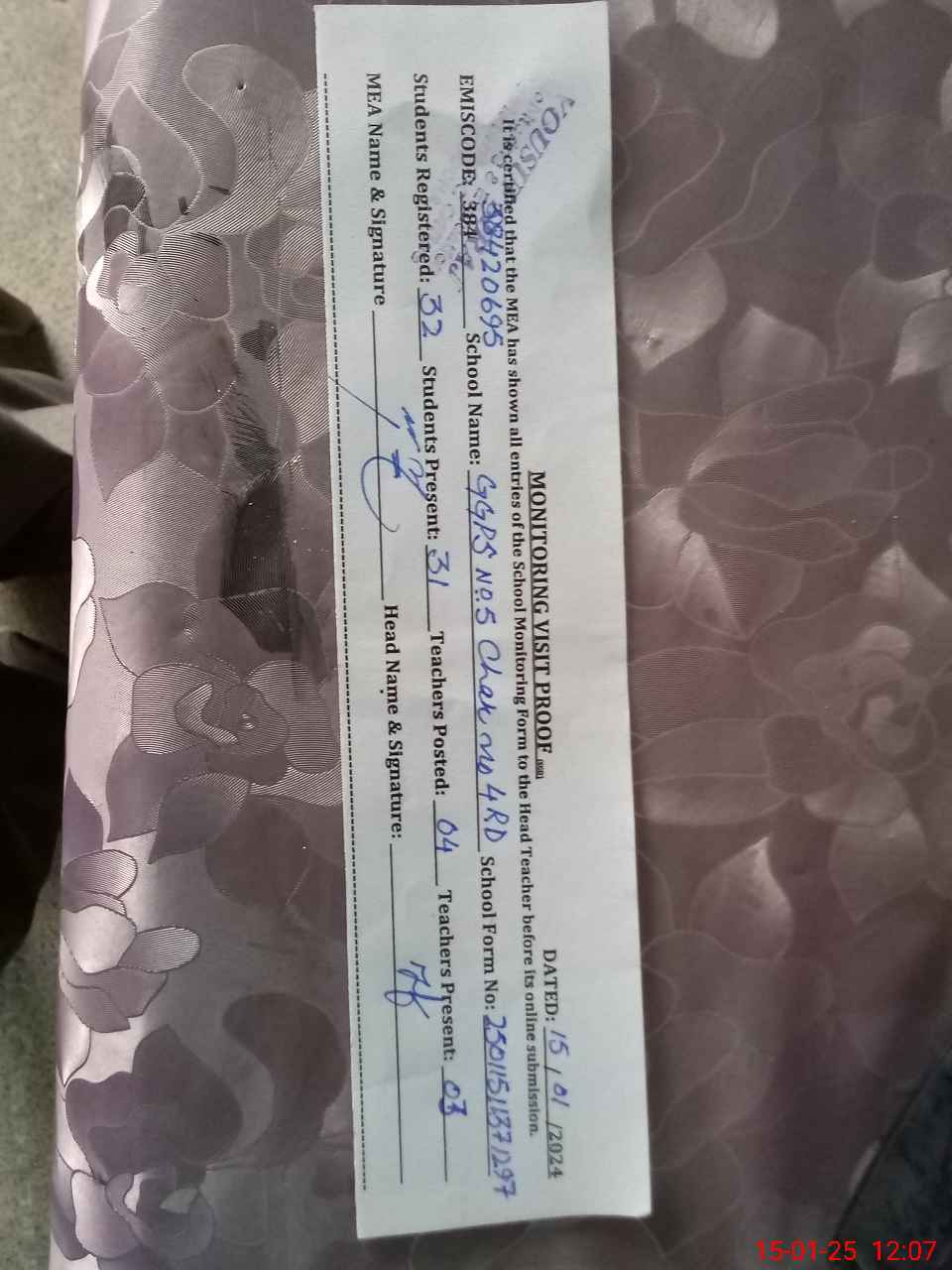 | EMIS Code: 38420695 | Name of School: GGPS NO 5 CHAK NO 4 REMOUNT DEPOT | |||