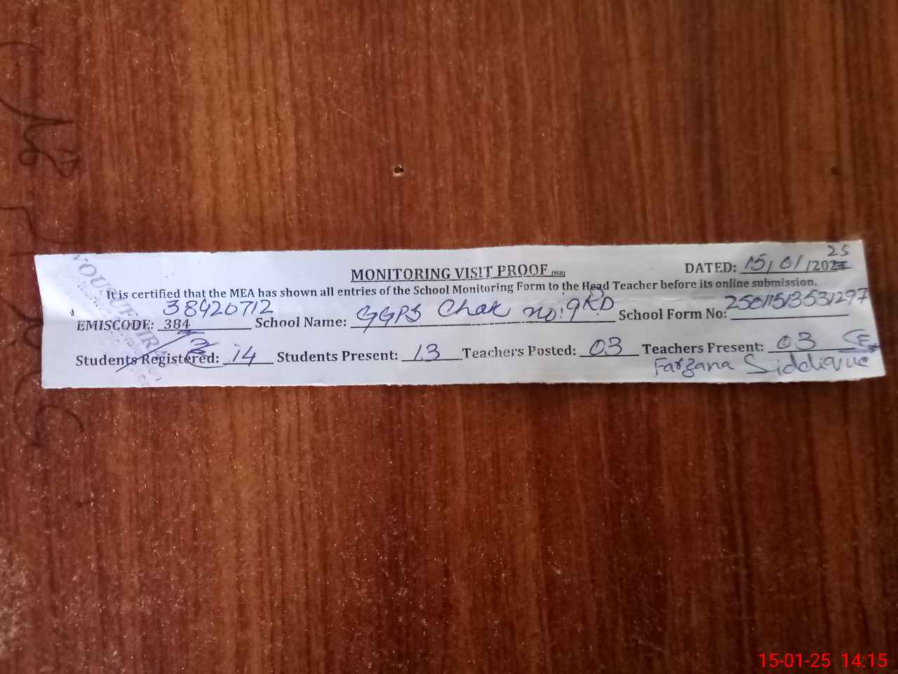 | EMIS Code: 38420712 | Name of School: GGPS CHAK NO.9 REMOUNT DEPOT | |||