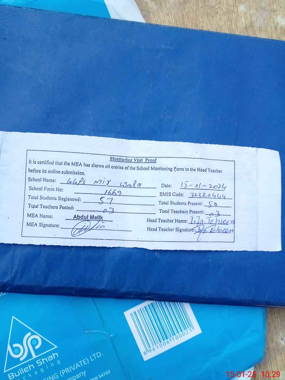 | EMIS Code: 32320444 | Name of School: GGPS MIR WALA | |||