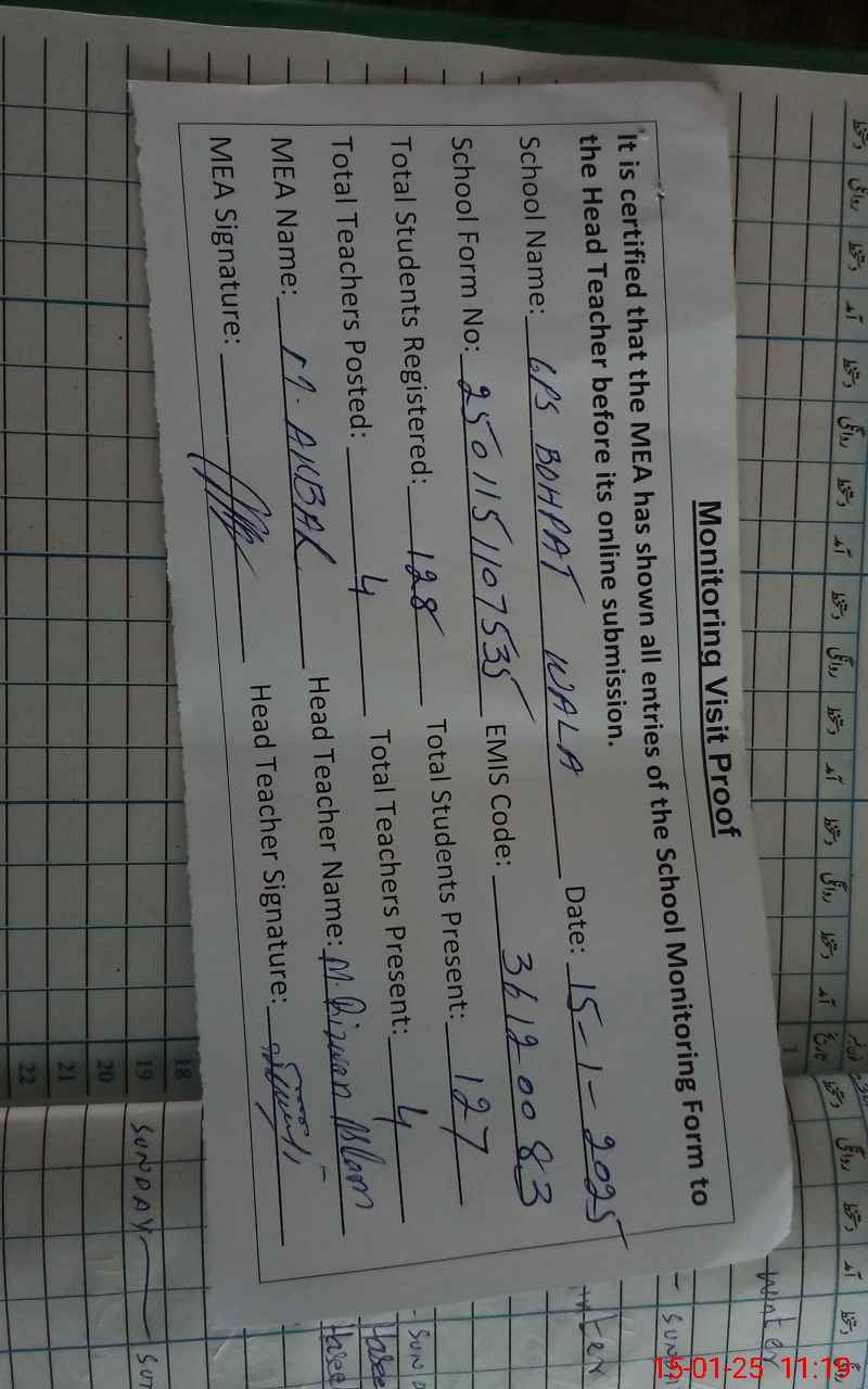 | EMIS Code: 36120083 | Name of School: GPS BHOPAT WALA P/O AGHARKHANI SHUJABAD | |||