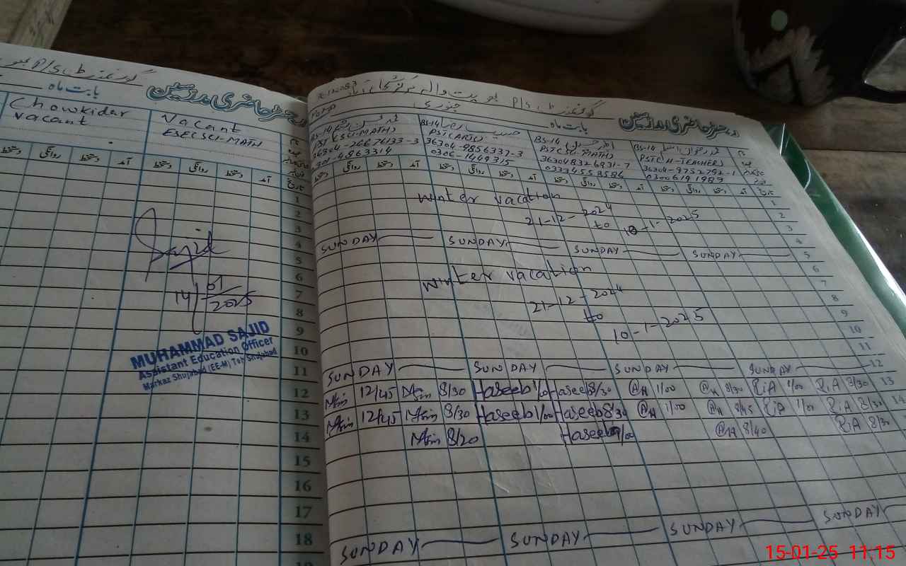 | Name: Mu**** Ri**** As**** Designation: (School Headmaster's/Headmistress's) PSTHEAD TEACHER Phone/Cell Number: 03**** |