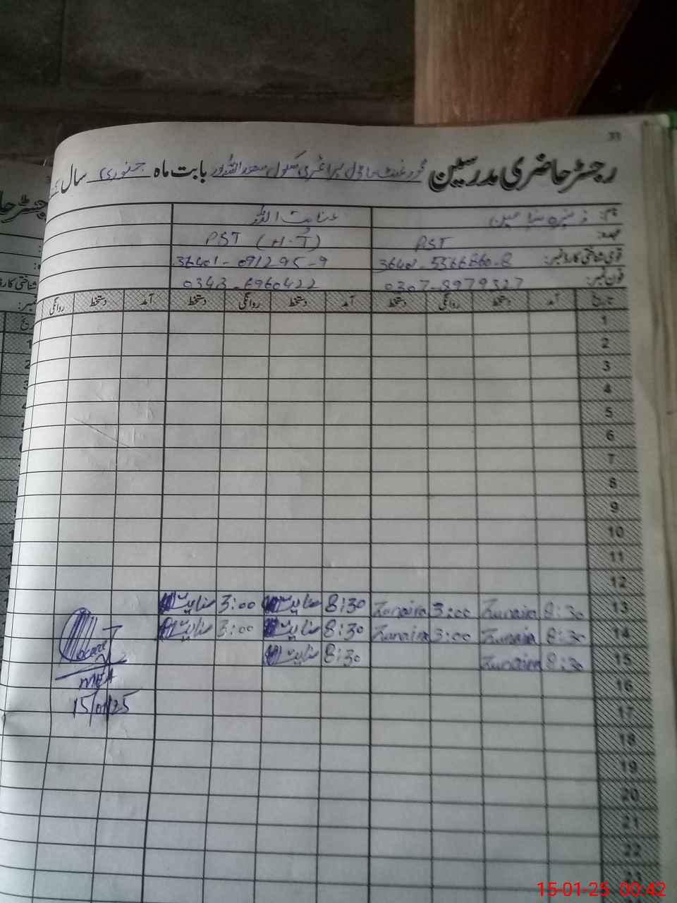| Name: IN**** UL**** Designation: (School Headmaster's/Headmistress's) PST Phone/Cell Number: 03**** |