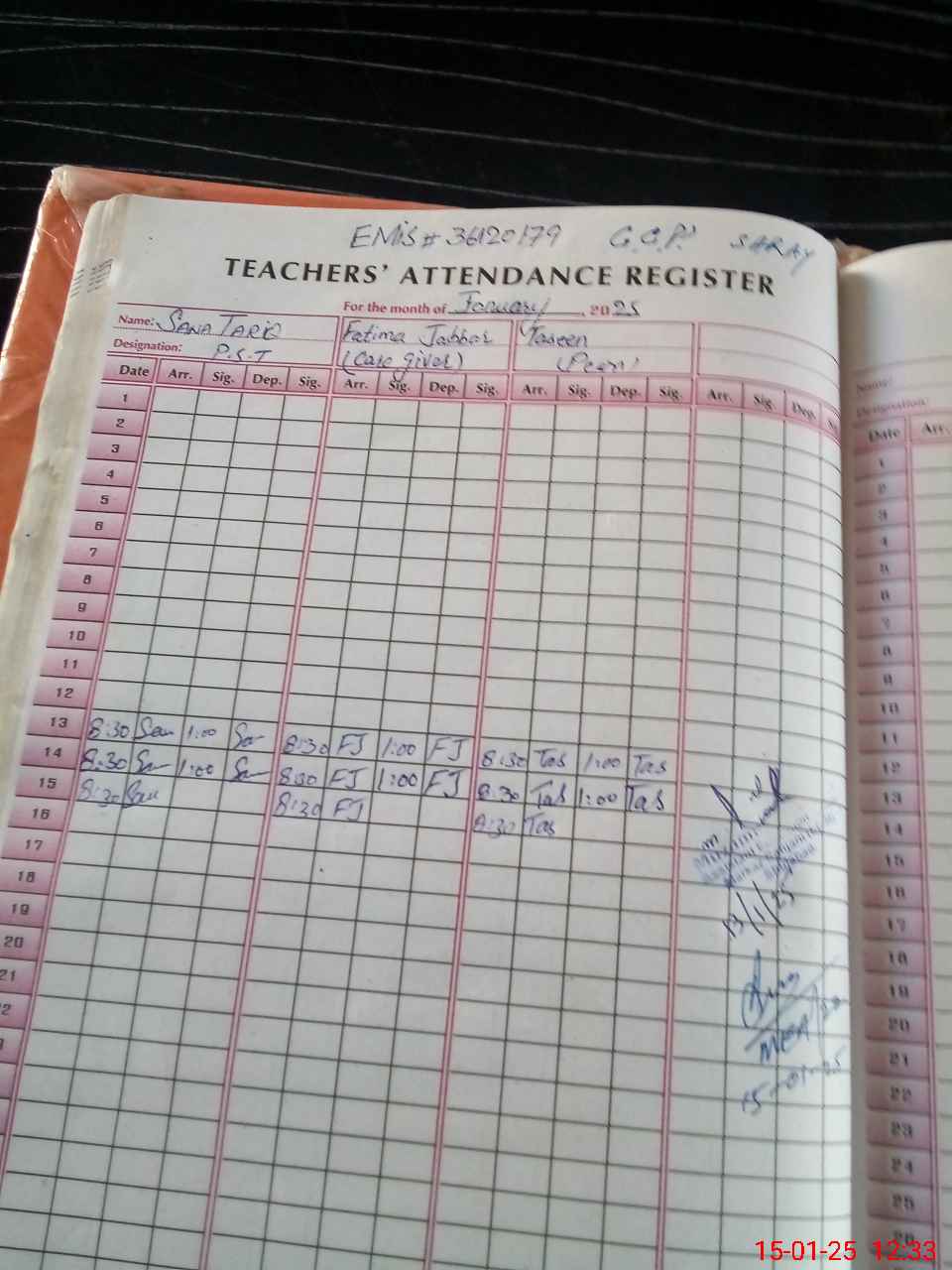| Name: Sa**** Ta**** Designation: (School Headmaster's/Headmistress's) PST Phone/Cell Number: 03**** |