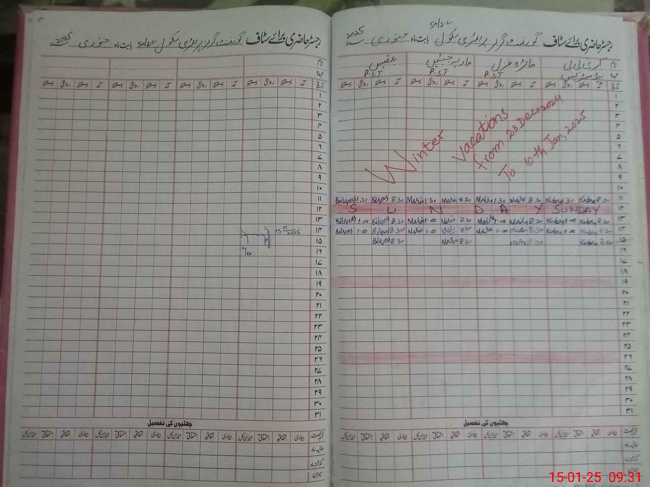 | Total no. of Classrooms: 7 No. of Classrooms Used for Teaching: 3 No. of Classrooms Storing Old Furniture, FTBs, etc: 0Comments if Any: Nominal roll for online attendance found contrary to current students records All enrolled students provided with free taxtbooks accordingly 02 old class rooms along with varanda declared as dangerous |