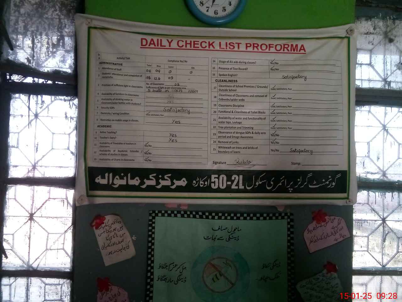 | District: OKARA | Tehsil: OKARA | Markaz: KARMAN WALA - FEMALE | Level: Primary | |