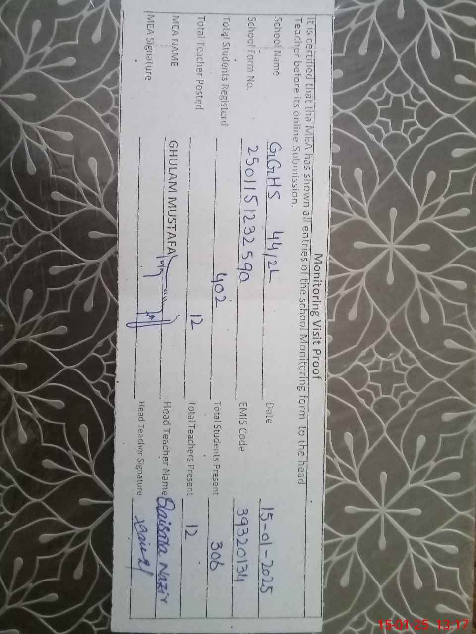 | EMIS Code: 39320134 | Name of School: GGHS CHAK NO.44/2-L | |||