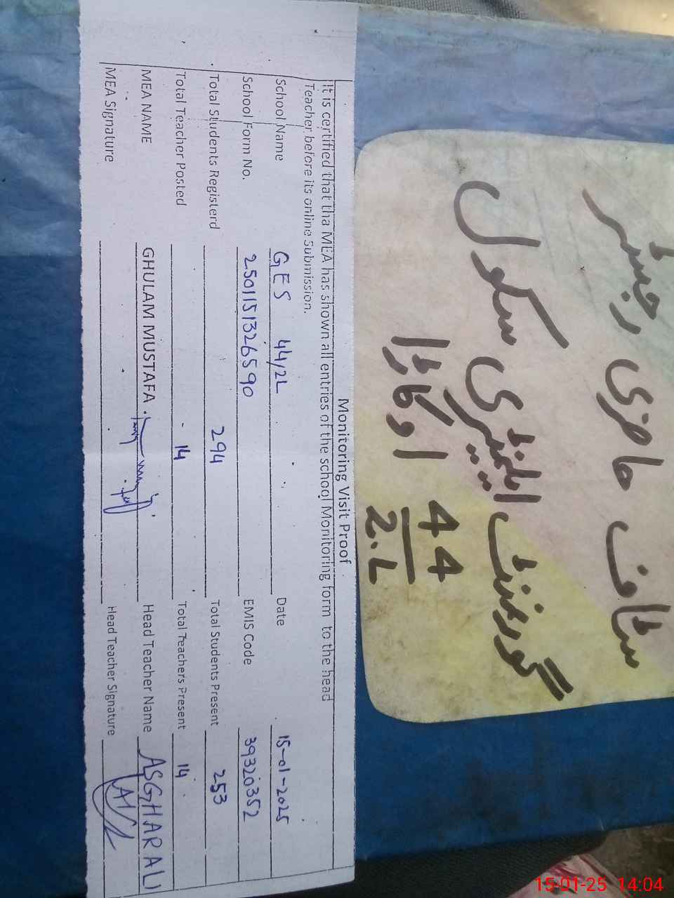 | Certified that this School was Inspected by the Undersigned MEA/DMO Today and the Information Stated Above is as Per Record. | |||||