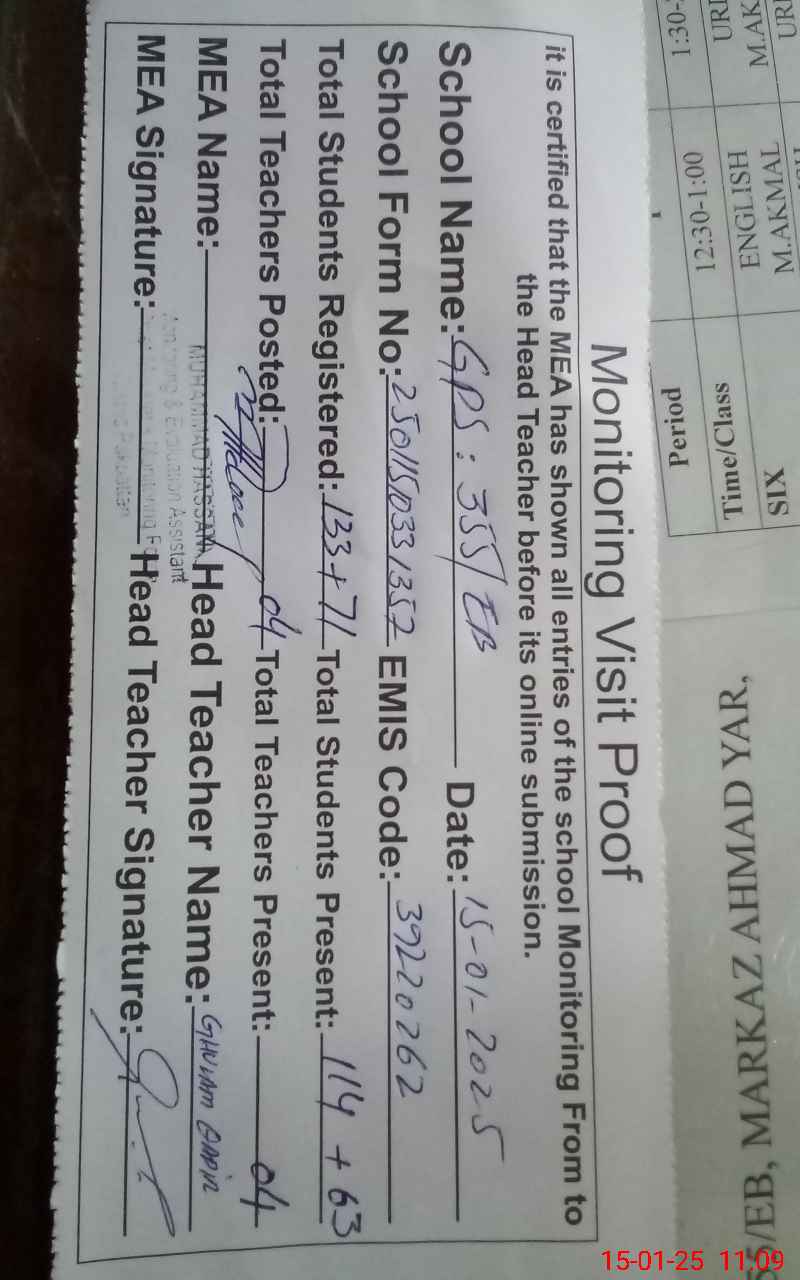 | EMIS Code: 39220262 | Name of School: GPS 355 EB P.O 351 EB | |||