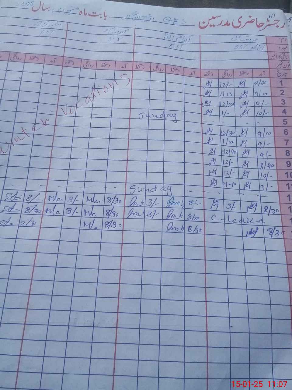 | CNIC | Full Name | Designation | R/C | Absence During Last Calender Month |
