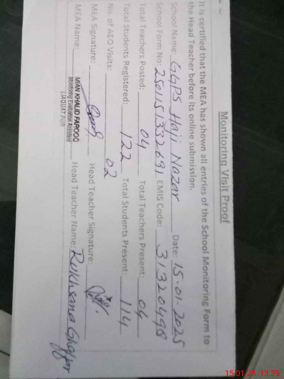 | EMIS Code: 31320498 | Name of School: GGPS HAJI NAZAR | |||