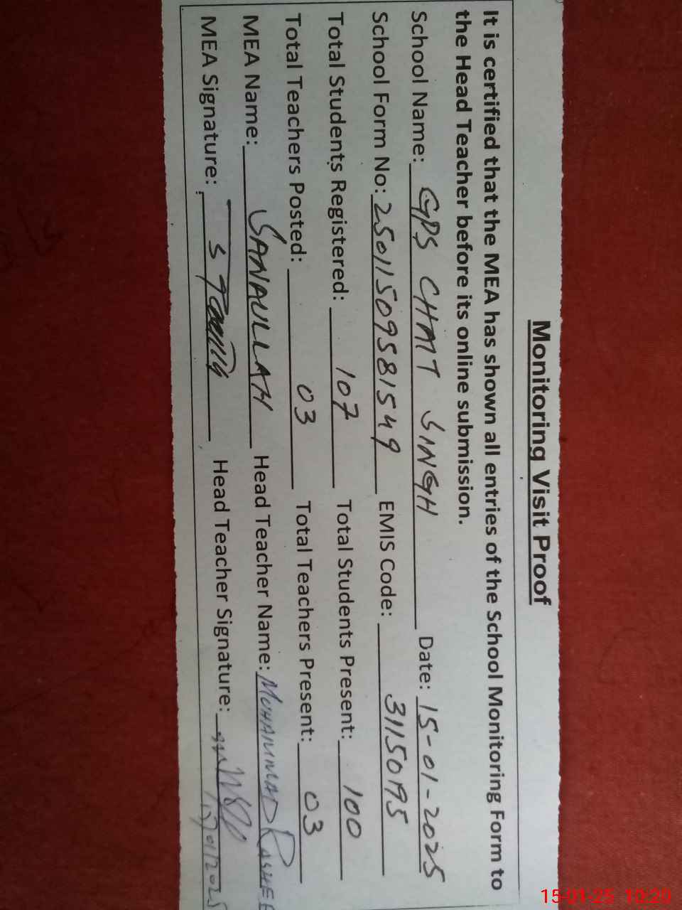| EMIS Code: 31150195 | Name of School: GPS CHAIT SINGH | |||