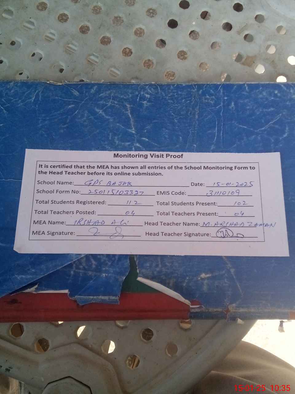 | EMIS Code: 31110109 | Name of School: GPS BAJAK | |||
