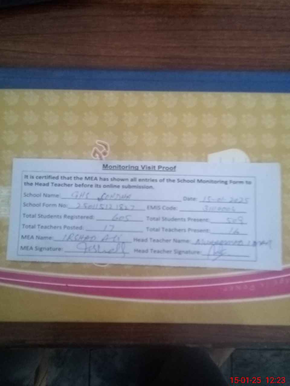 | EMIS Code: 31110004 | Name of School: GHS SONDHA | |||
