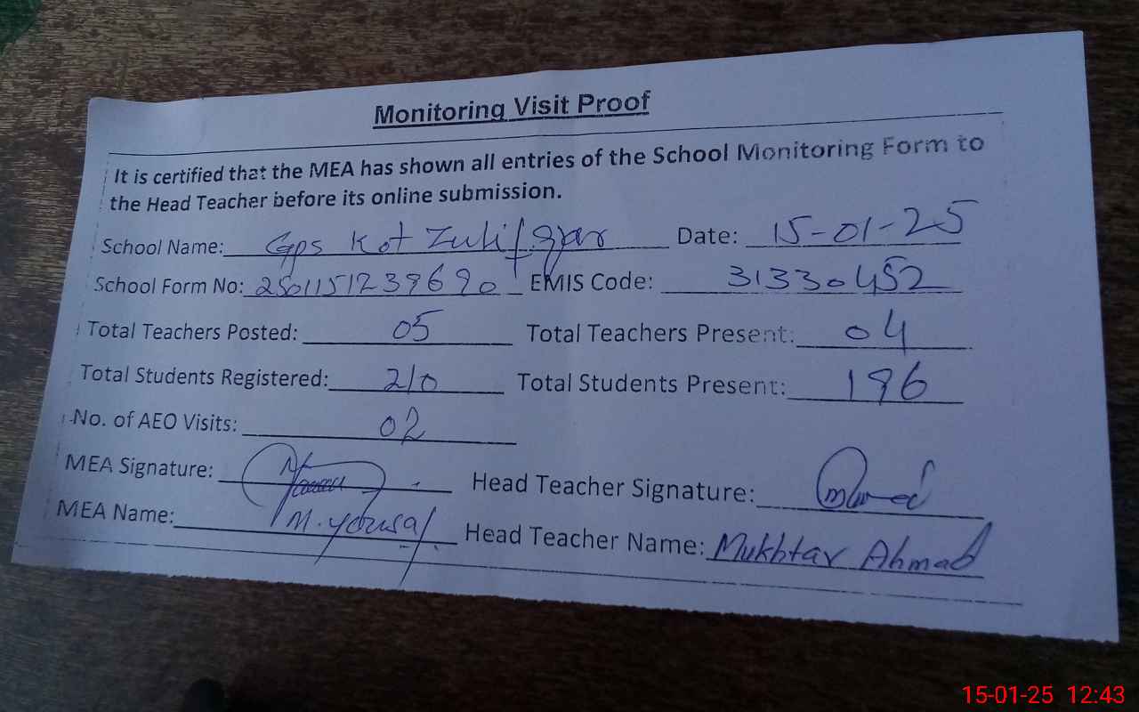 | EMIS Code: 31330452 | Name of School: GPS KOT ZULFIQAR | |||