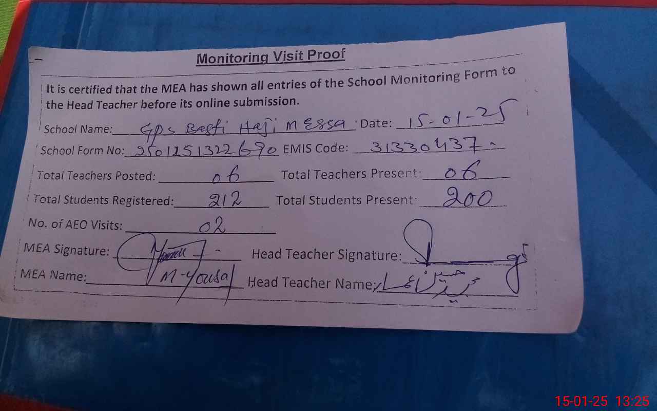 | EMIS Code: 31330437 | Name of School: GPS BASTI HAJI M. ESSA | |||