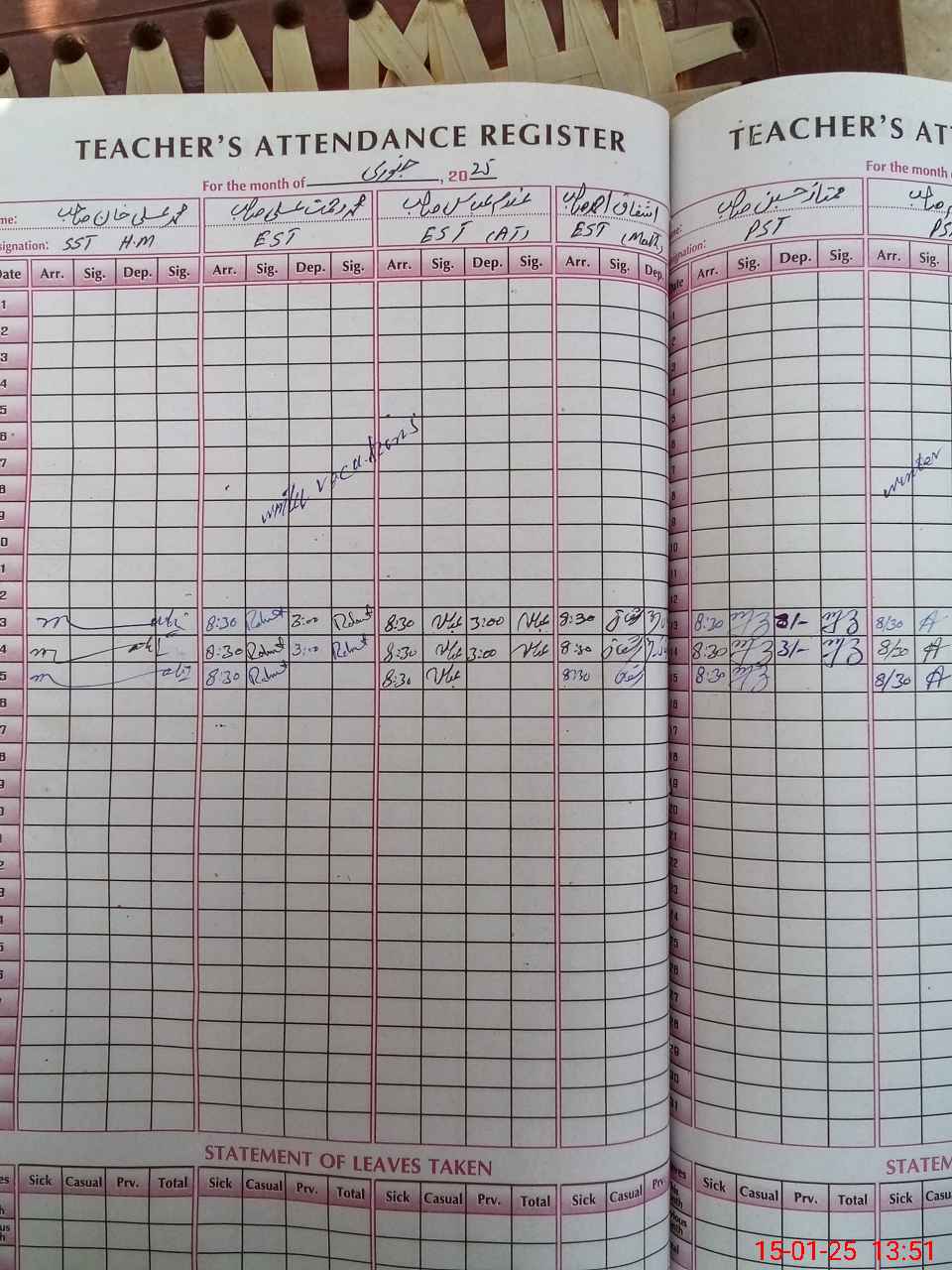 | Leave | Duty | Absent | Maternity | Medical | Ex- Pak |