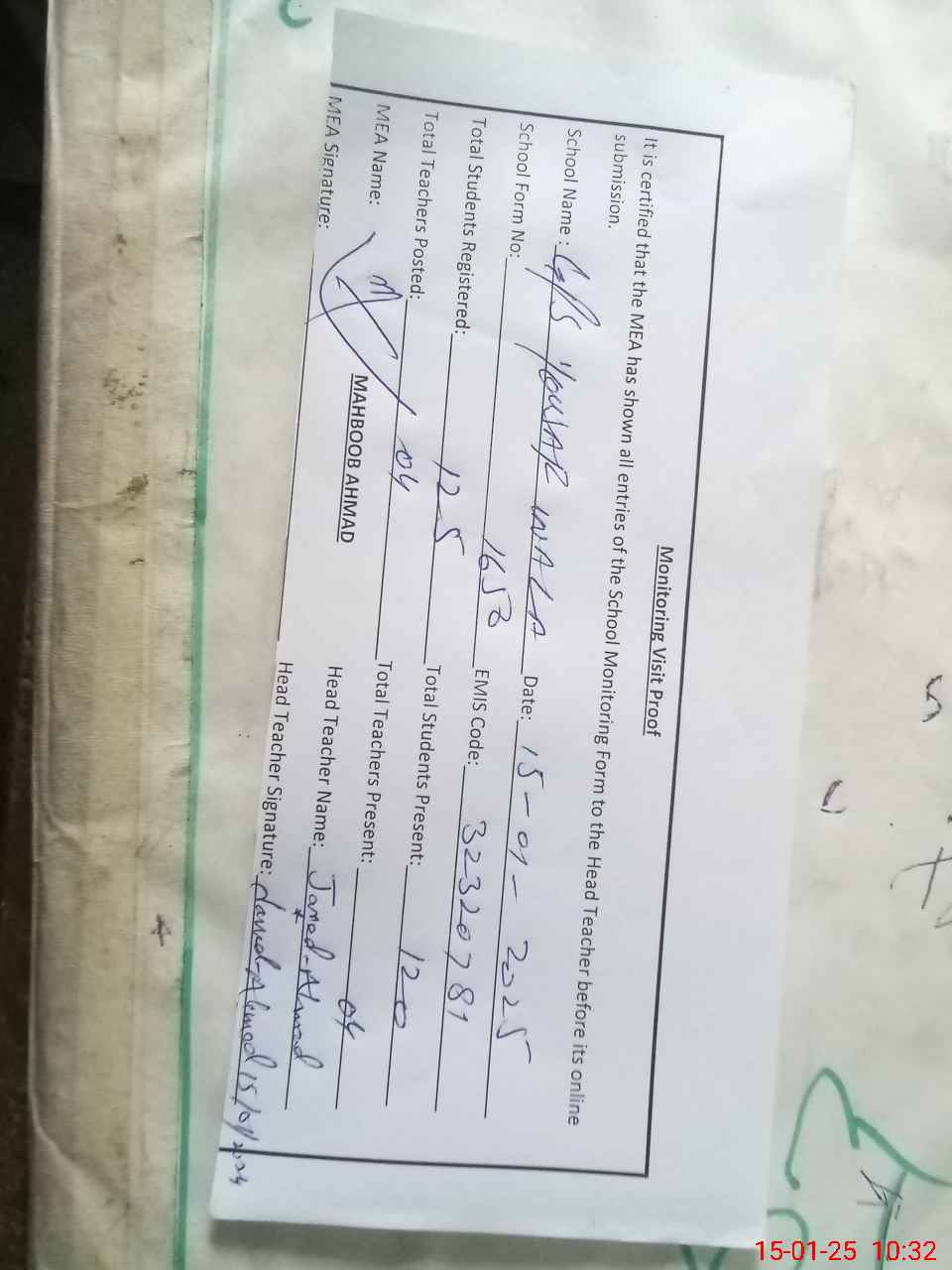 | EMIS Code: 32320781 | Name of School: GPS YOUSUF WALA | |||