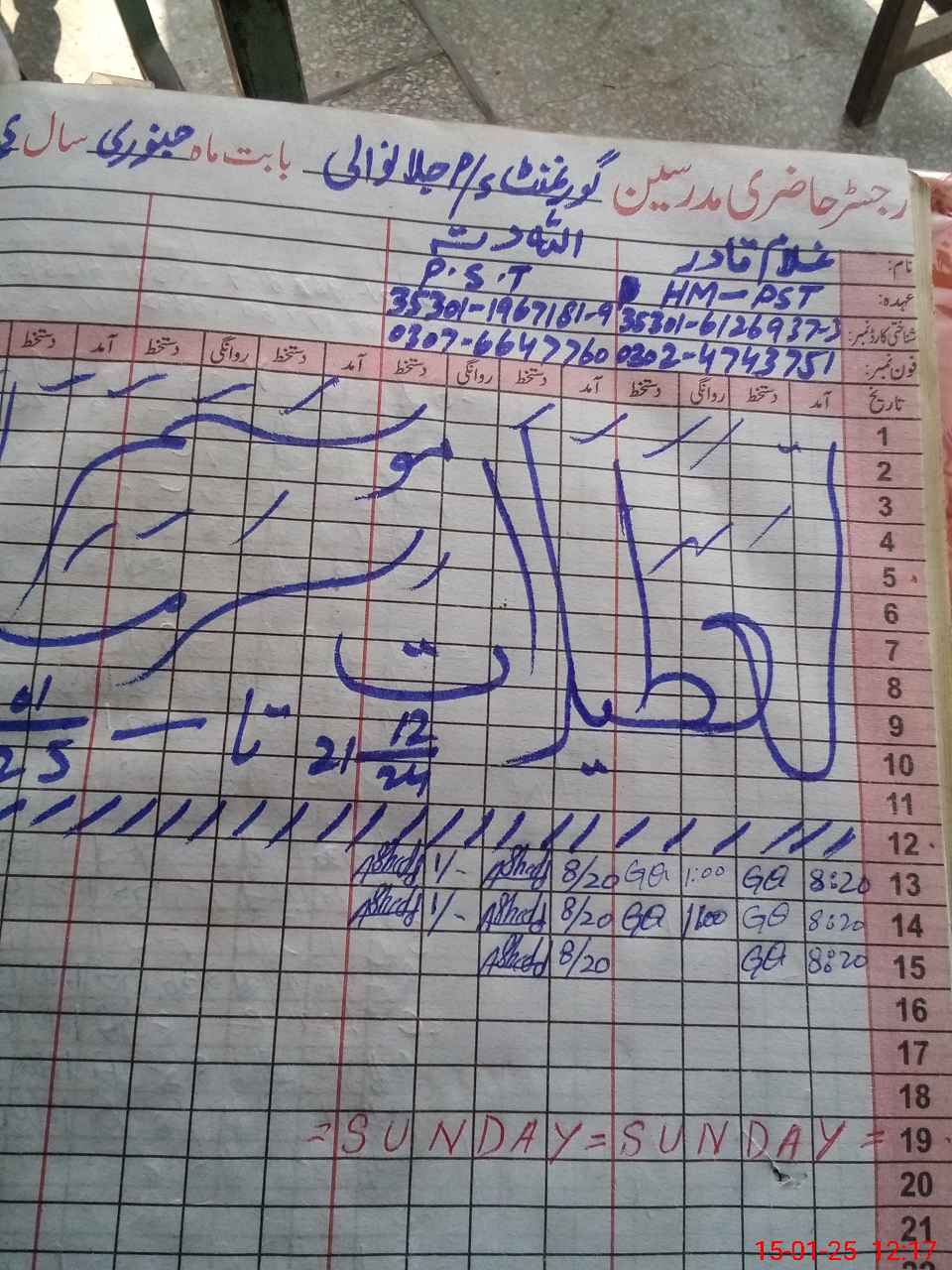 | Name: Gh**** Qa**** Designation: (School Headmaster's/Headmistress's) PST Phone/Cell Number: 03**** |