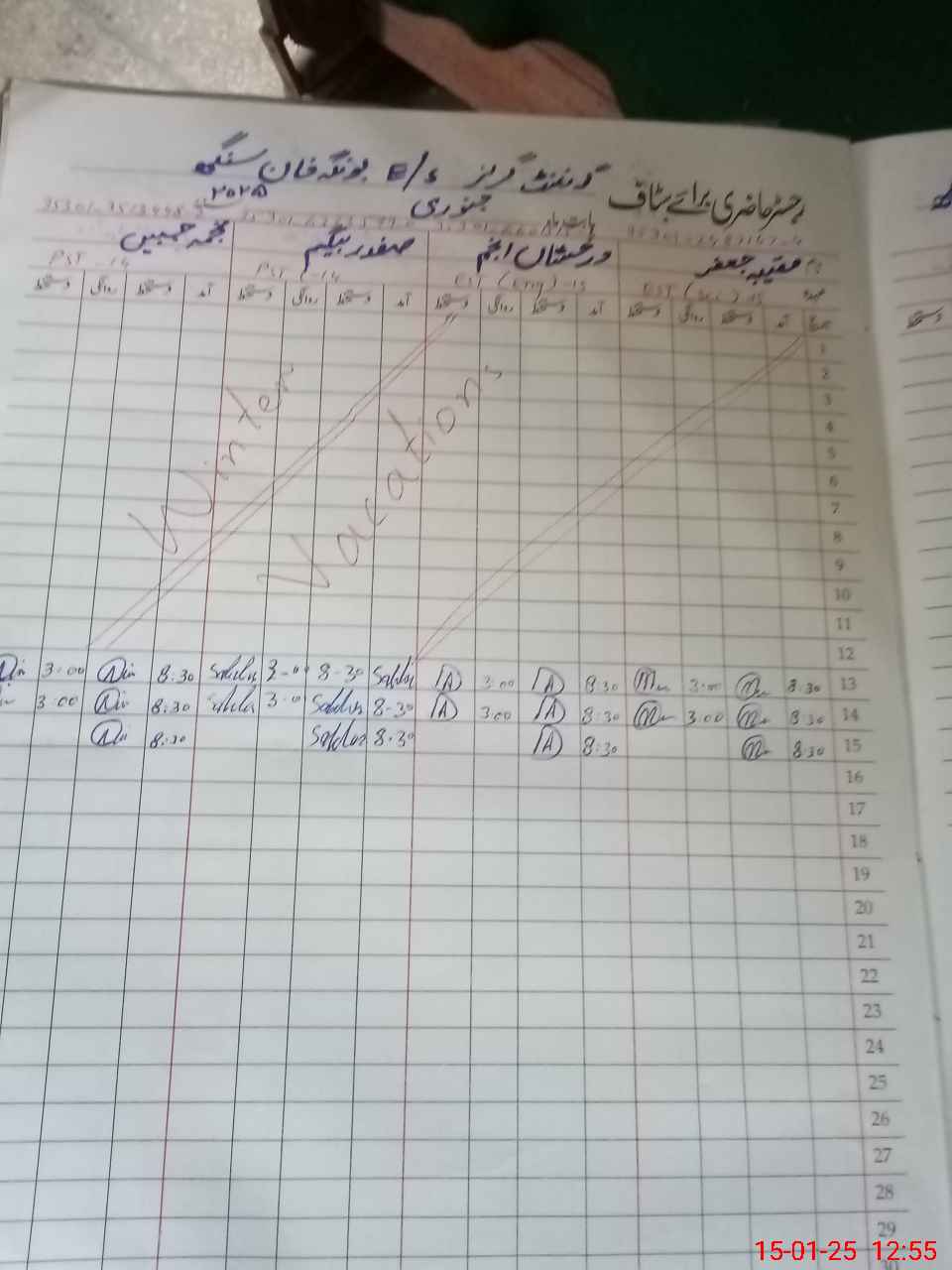 | CNIC | Full Name | Designation | R/C | Absence During Last Calender Month |