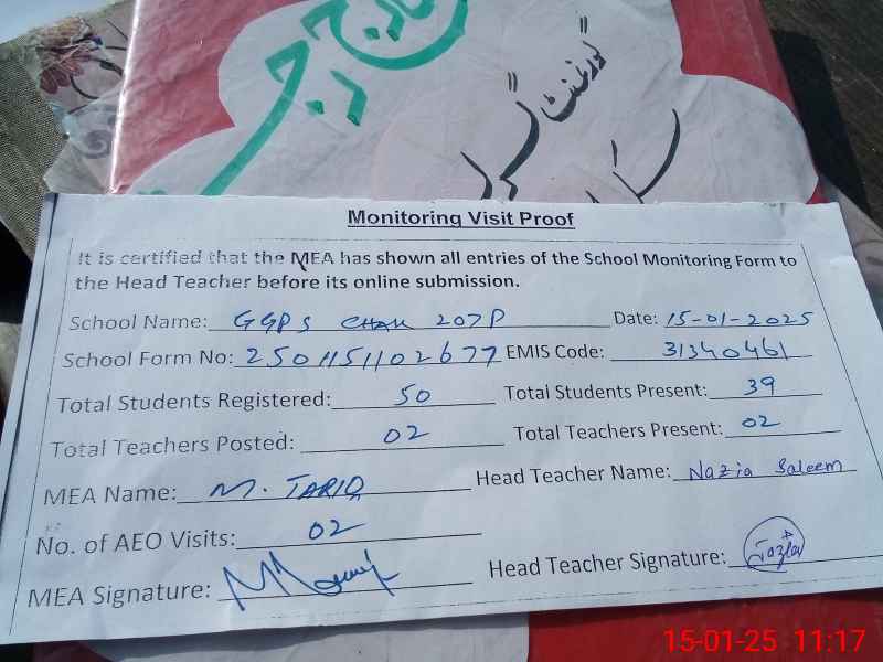 | EMIS Code: 31340461 | Name of School: GGPS 207 P | |||