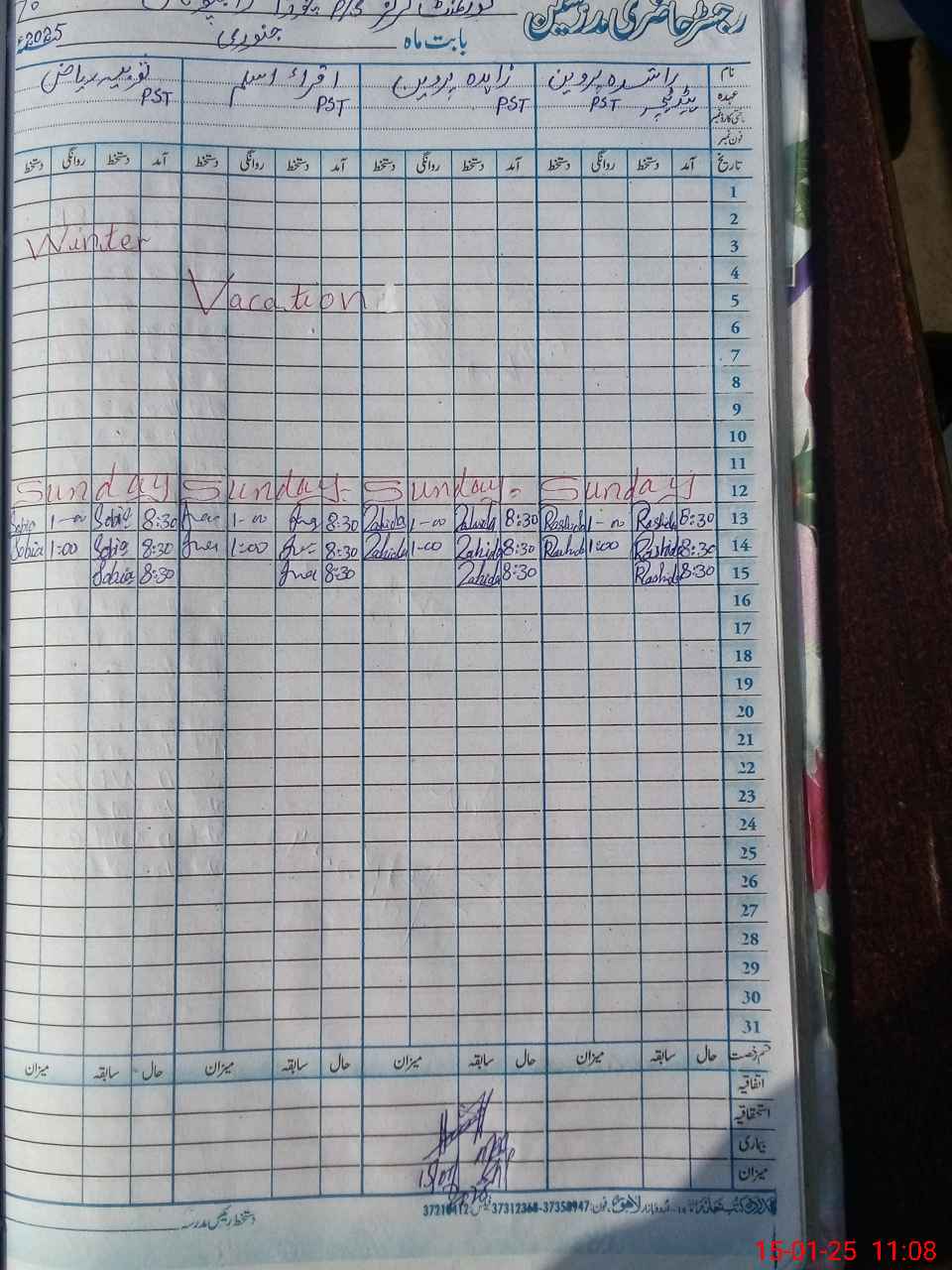 | CNIC | Full Name | Designation | R/C | Absence During Last Calender Month |