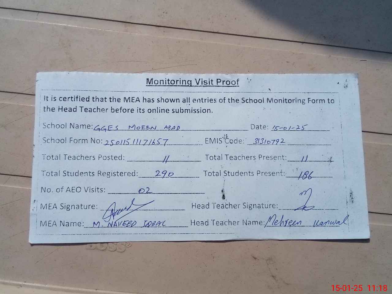 | EMIS Code: 31310792 | Name of School: GGES MOEEN ABAD | |||