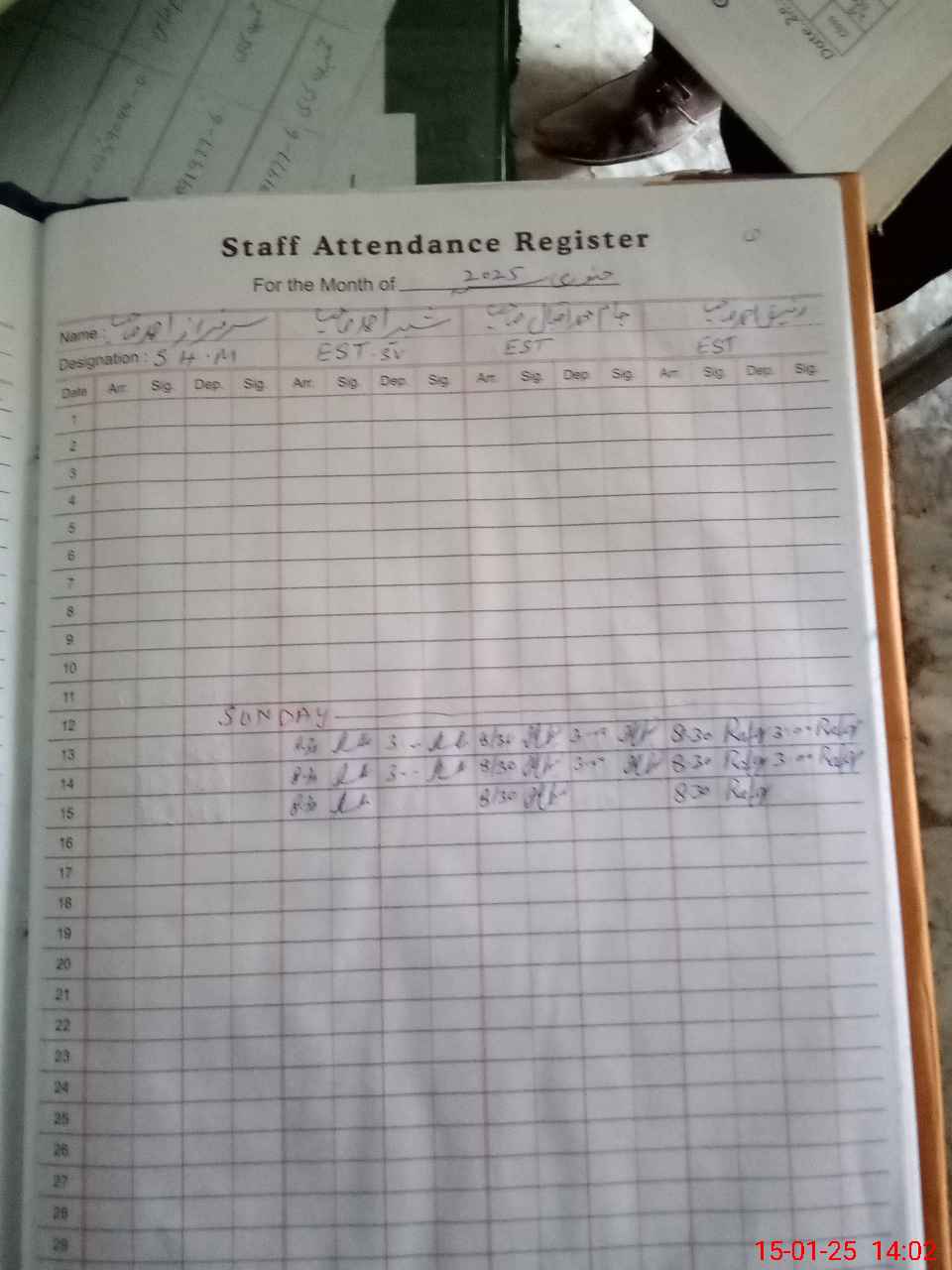 | CNIC | Full Name | Designation | R/C | Absence During Last Calender Month |