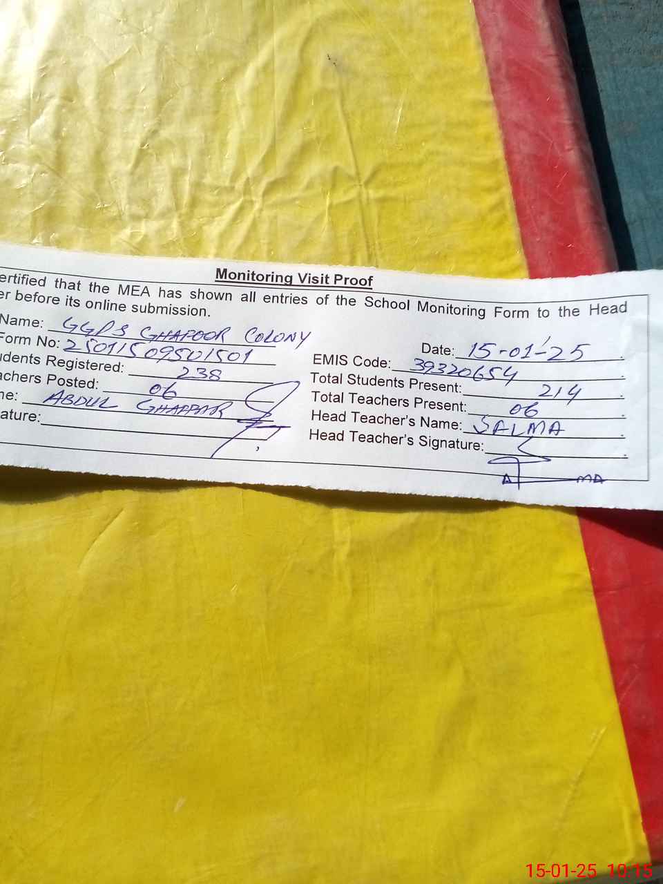 | EMIS Code: 39320654 | Name of School: GGPS GHAFOOR COLONY OKARA | |||