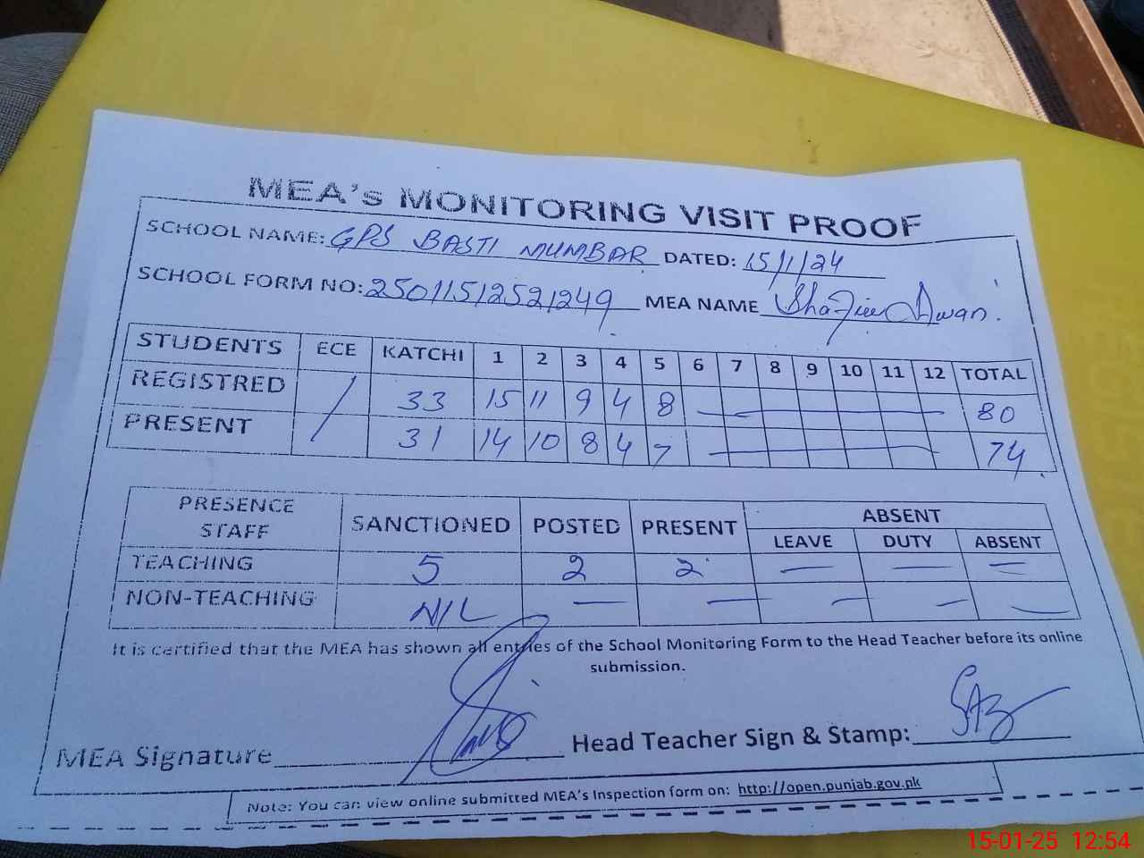 | EMIS Code: 36410325 | Name of School: GPS BASTI MUMBAR, MOUZA CHARAGH BELA, NAWAN SHEHR | |||