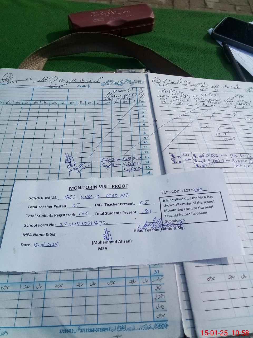 | Attendance Register | Head Teacher | MEA with School | Visit Proof |