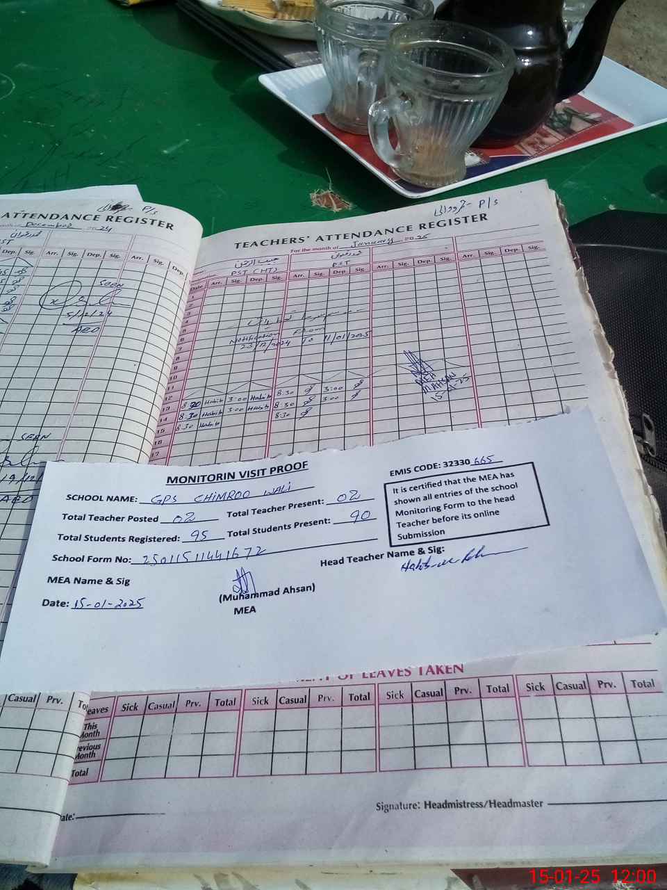 | Attendance Register | Head Teacher | MEA with School | Visit Proof |