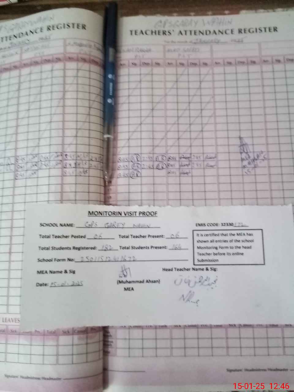 | Attendance Register | Head Teacher | MEA with School | Visit Proof |
