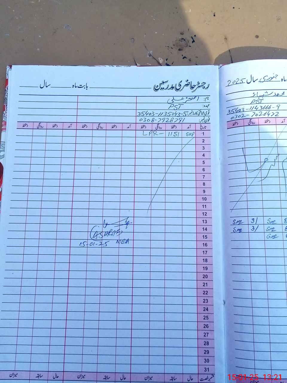 | CNIC | Full Name | Designation | R/C | Absence During Last Calender Month |