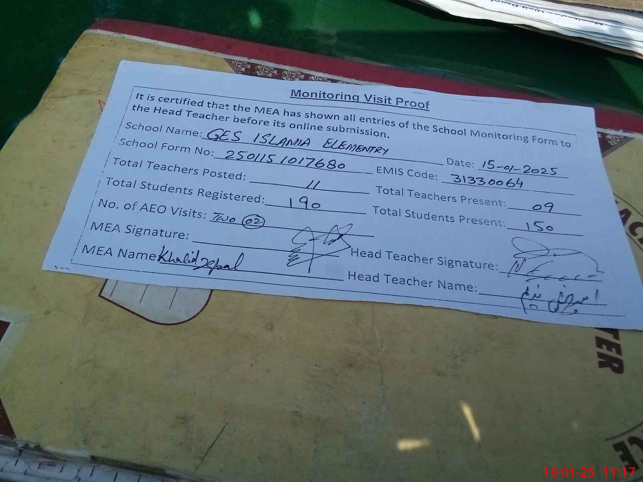| EMIS Code: 31330064 | Name of School: GES ISLAMIA ELEMENTARY | |||