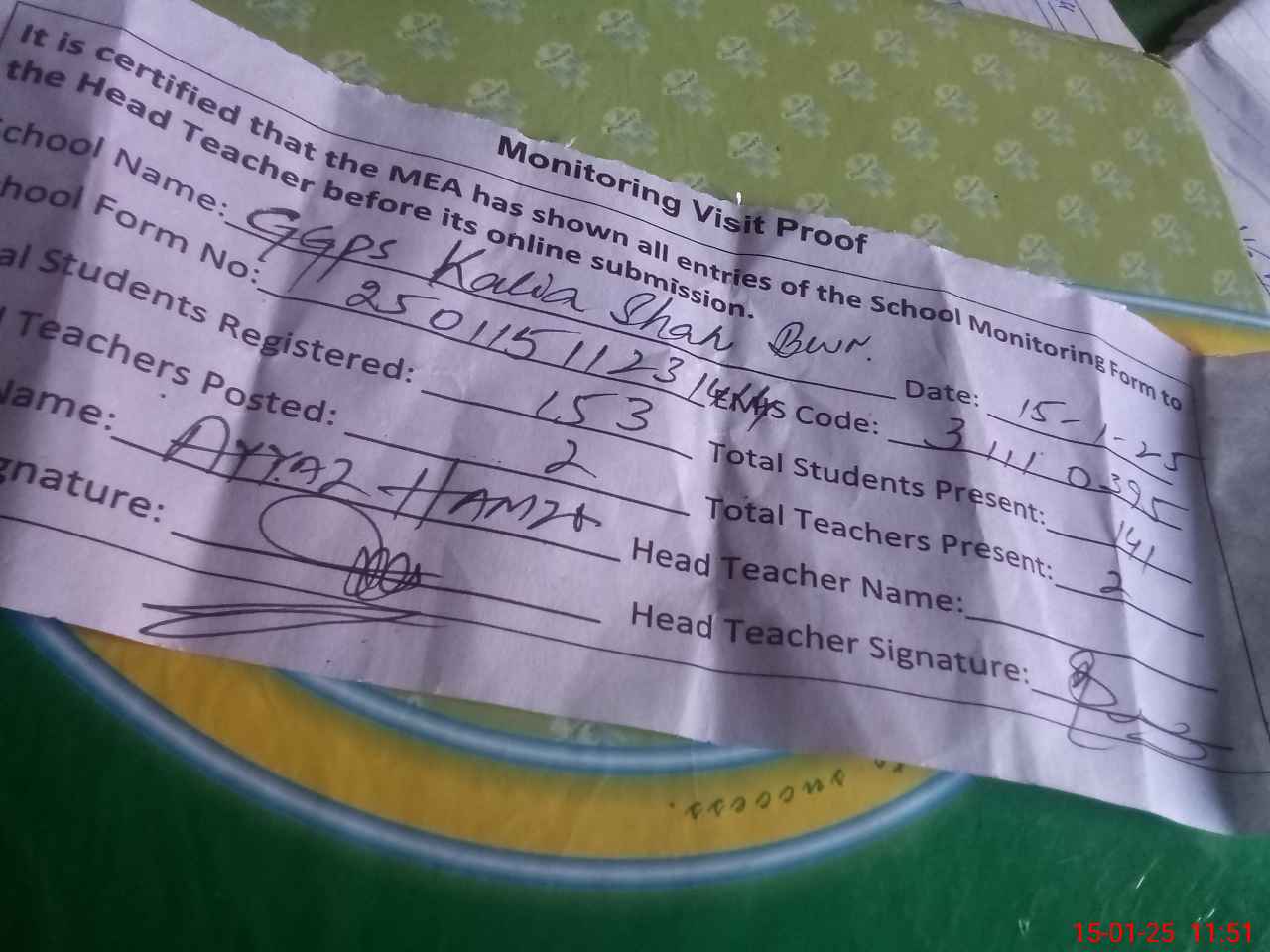 | EMIS Code: 31110395 | Name of School: GGPS KALIA SHAH | |||