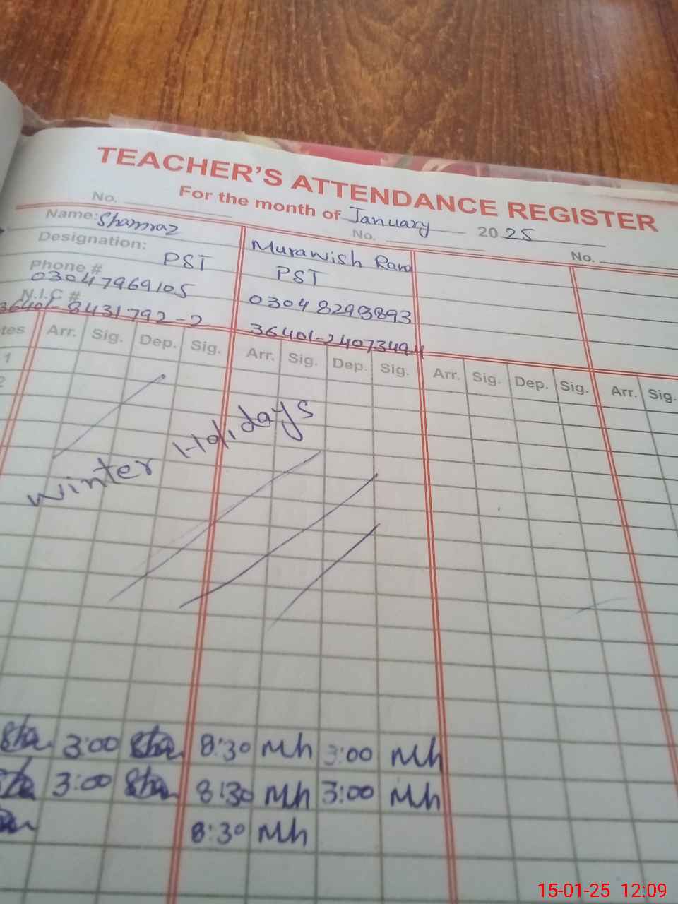 | CNIC | Full Name | Designation | R/C | Absence during last cal. month |