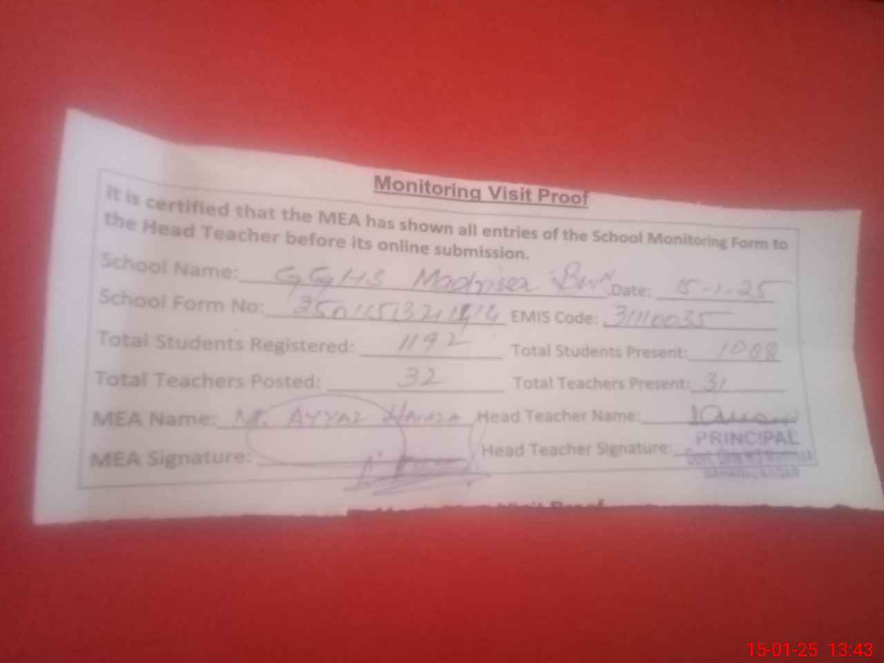 | Certified that this School was Inspected by the Undersigned MEA/DMO Today and the Information Stated Above is as Per Record. | |||||