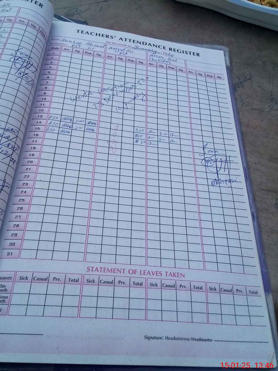| Name: Ak**** Ah**** Designation: (School Headmaster's/Headmistress's) PST Phone/Cell Number: 03**** |