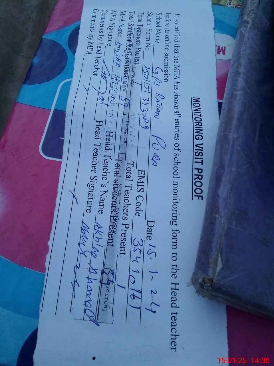 | EMIS Code: 35410161 | Name of School: GPS RATAN PURA | |||