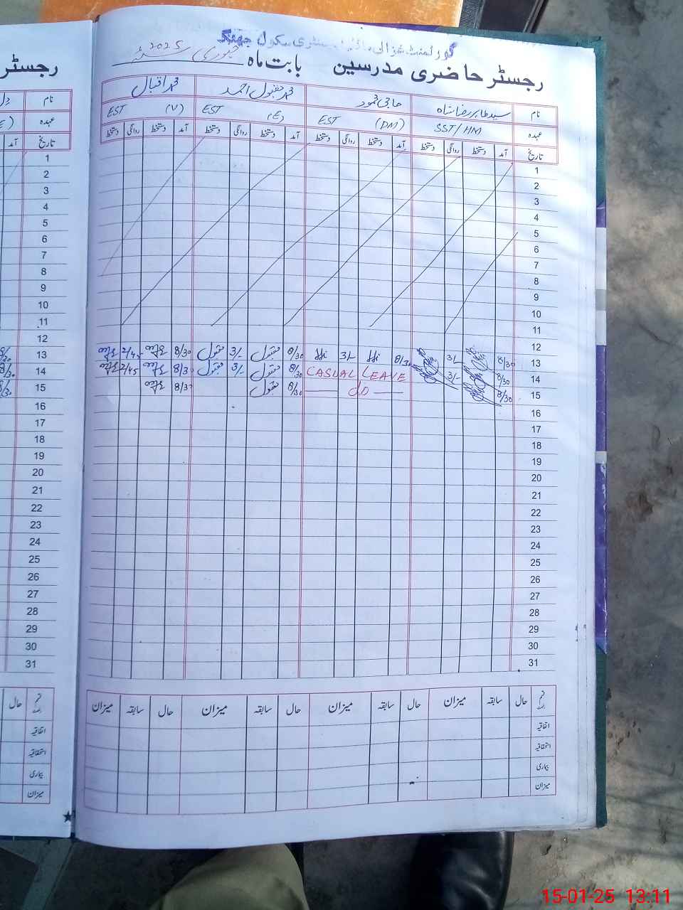 | CNIC | Full Name | Designation | R/C | Absence During Last Calender Month |