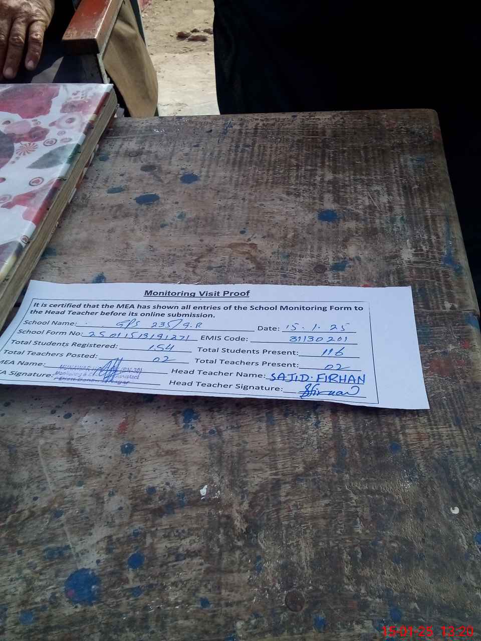 | EMIS Code: 31130201 | Name of School: GPS CHAK 235/9-R | |||