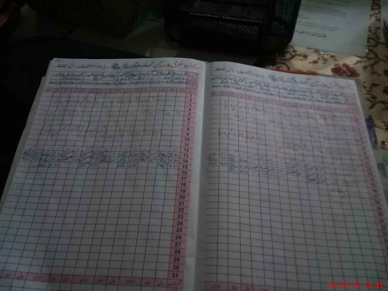 | CNIC | Full Name | Designation | R/C | Absence During Last Calender Month |
