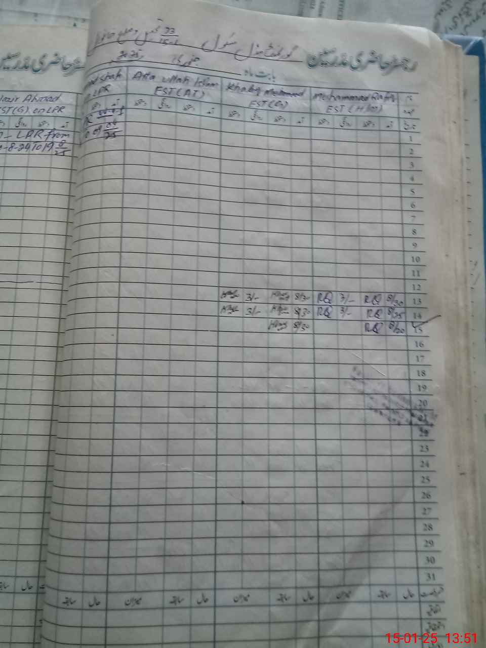 | CNIC | Full Name | Designation | R/C | Absence During Last Calender Month |