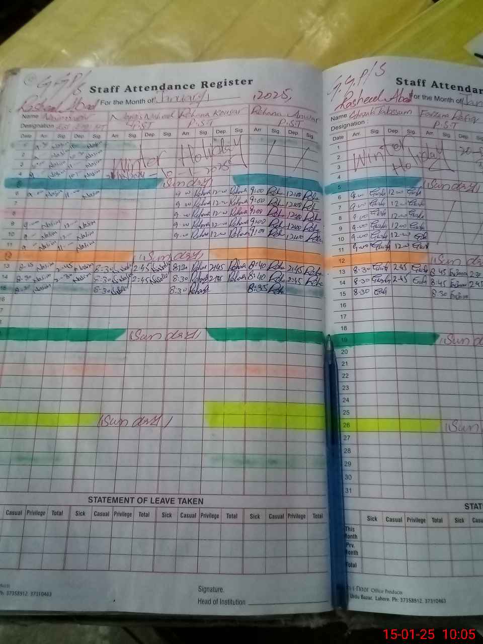 | Leave | Duty | Absent | Maternity | Medical | Ex- Pak |