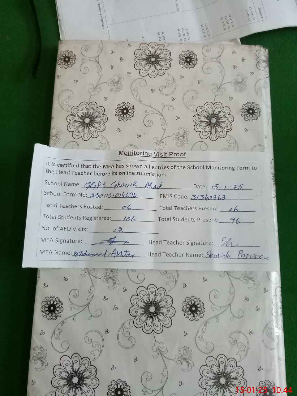 | EMIS Code: 31340363 | Name of School: GGPS GHARIB ABAD GALIB STREET 3 | |||
