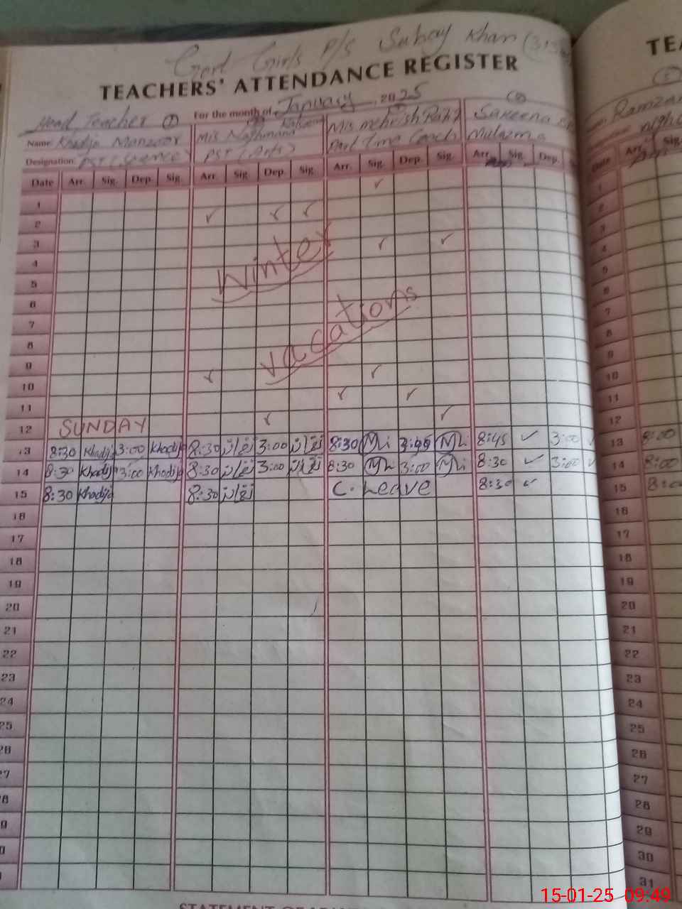 | Name: KH**** MA**** Designation: (School Headmaster's/Headmistress's) PST Phone/Cell Number: 03**** |